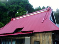 今ではずいぶん少なくなりましたが、日本文化の象徴でもある茅葺トタン屋根です。この形式をみるとどこか懐かしくホッとします。日本の残したい景観のひとつです。